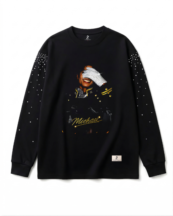 Inspirado en la estética inconfundible de Michael Jackson, este buzo combina presencia escénica con detalles que elevan el diseño a otro nivel.